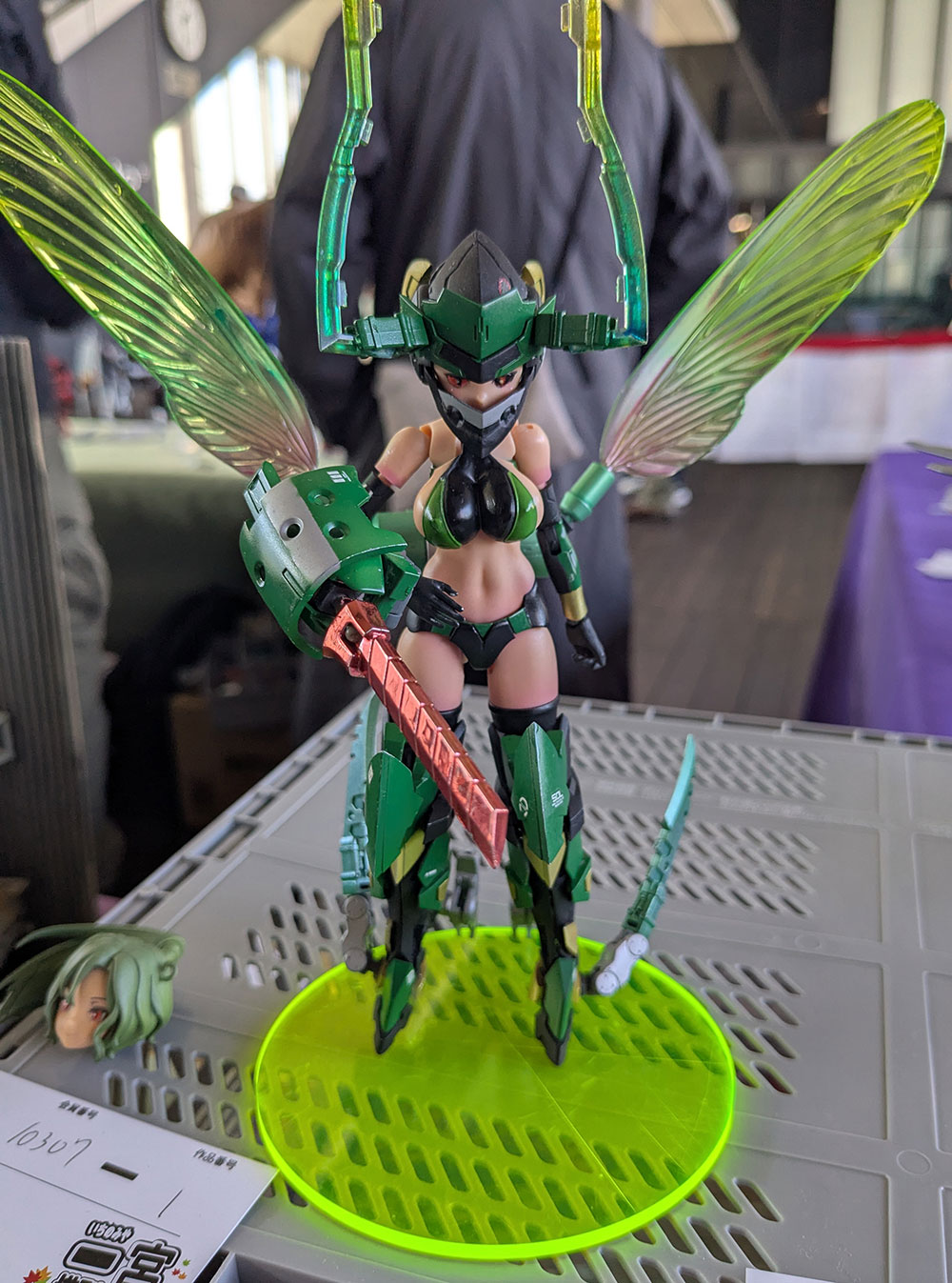 コチラはめちゃくちゃカスタムされてるであろう美プラ。羽の美しさに目が惹かれますよね。こんな特徴的なパーツなのに記憶に無かったので「どのキットに入ってるんですか?」と伺ったところ、まさかの自由研究シリーズのカマキリのプラモデルからのパーツでした。オリジナルカスタムとは奥が深い。