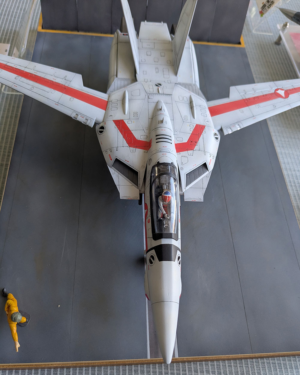 コチラは結構大きめのカッコいいマクロスのVF。コックピットにはちゃんとパイロット乗っています。滑走路に誘導員が配置されて、まさに飛び立とうとしている所ですね。背景を含めた一つ作品になっていて臨場感がありました。