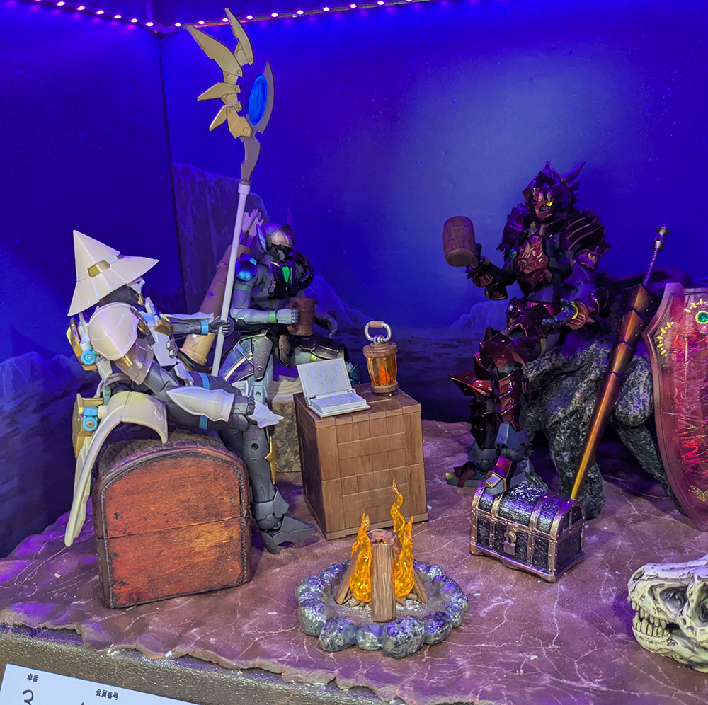 精巧すぎるミニチュアフィギュアを使ったボードゲーム「ウォーハンマー」のエリアもありました。めちゃくちゃいっぱい並んでてどれもスゴイ造形でした。なんで豪華なボードゲームなんだ。これだけの数があって統一感のある色味になってるのがスゴイ。この数を塗装するのも大変だっただろうなぁ。