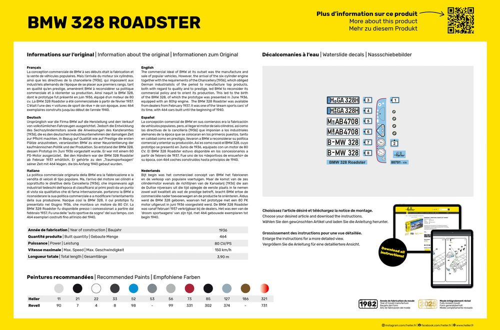 第二次世界大戦前のスポーツカーレースで活躍したBMWの2シータースポーツ、BMW328ロードスターを1/24スケールで再現したプラスチックモデル組み立てキットです。
