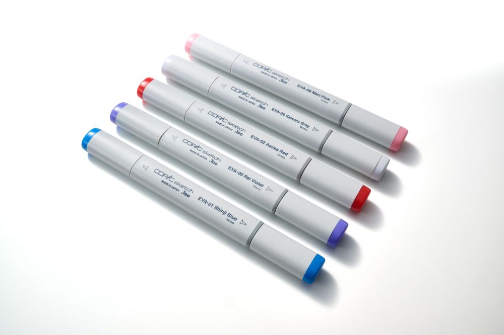 エヴァンゲリオンコラボデザインのコピックスケッチが5色全種入ったプレミアムセット。
