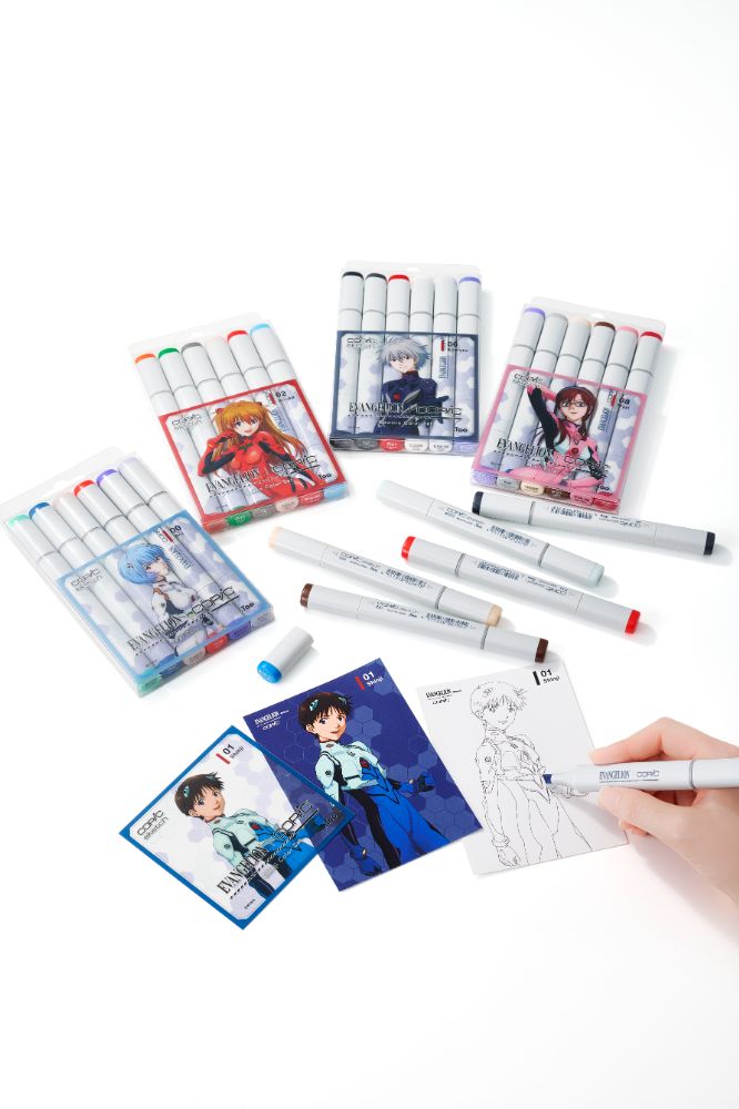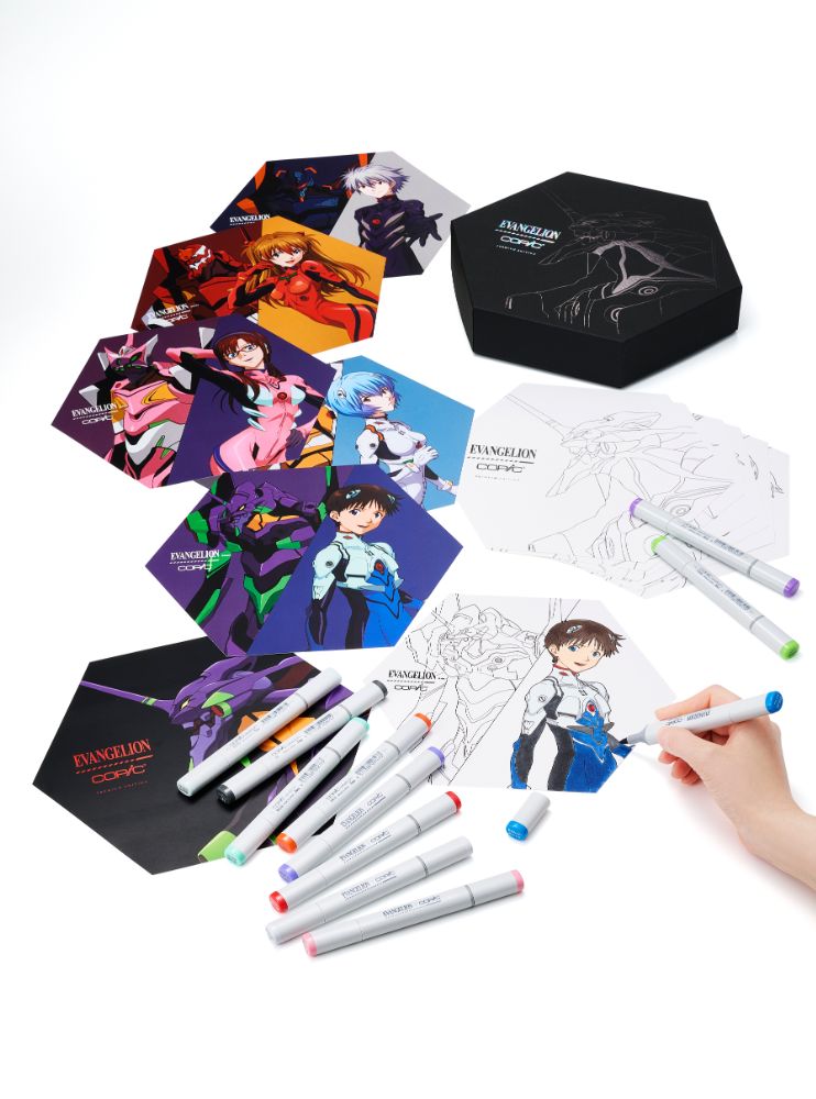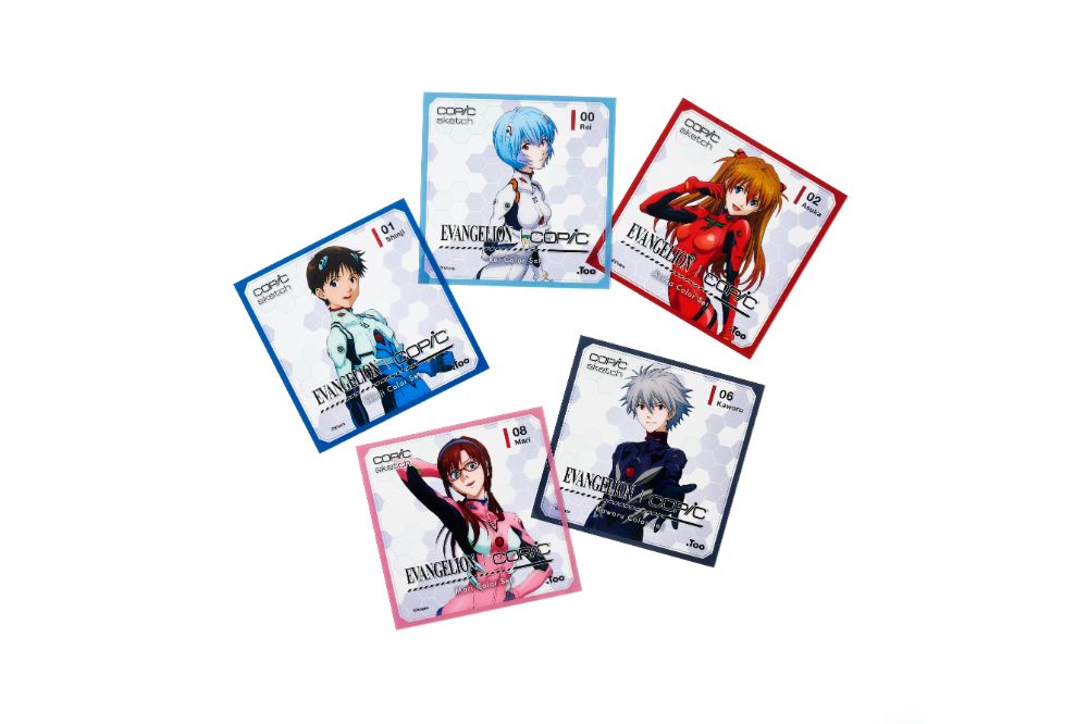オリジナルデザインのコピックスケッチには、コラポロゴと、エヴァンゲリオン由来のオリジナルの色名·色番号がプリントされています。