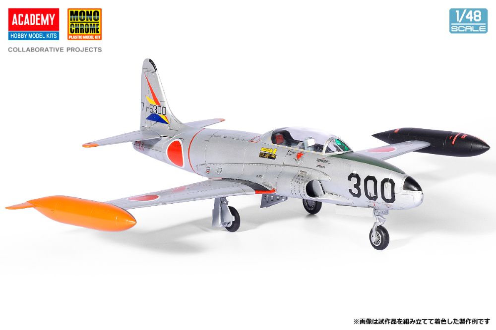 航空自衛隊で長期間に亘って使用された中等練習機 T-33A(若鷹)が1/48スケールで登場します。製品は、複座化されたコックピットや直線翼、機体の繊細なリベットやパネルラインを再現。エアブレーキは開放状態での組み立てが可能。航空自衛隊航空総隊所属機を含めたデカール8種が付属。