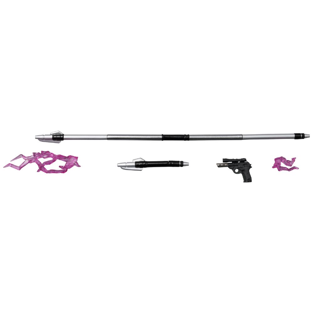 - ●頭部パーツ3種/布製マント/各種武器(フォースランス、ブラスターピストル等)/火炎放射エフェクトパーツ/可動式フィギュアスタンド付属!
