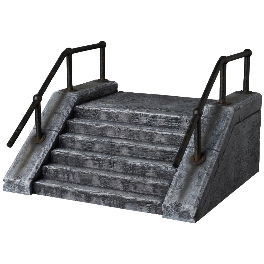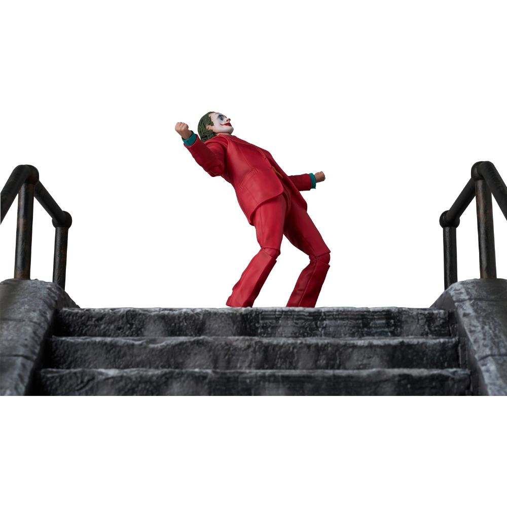 - ●頭部パーツ5種/階段ジオラマステージ/ 交換用ジャケット/座り用下半身/花束/ ピエロマスク/ハンドガン/ジョークノート/ 椅子パーツ/可動式フィギュアスタンド付属!