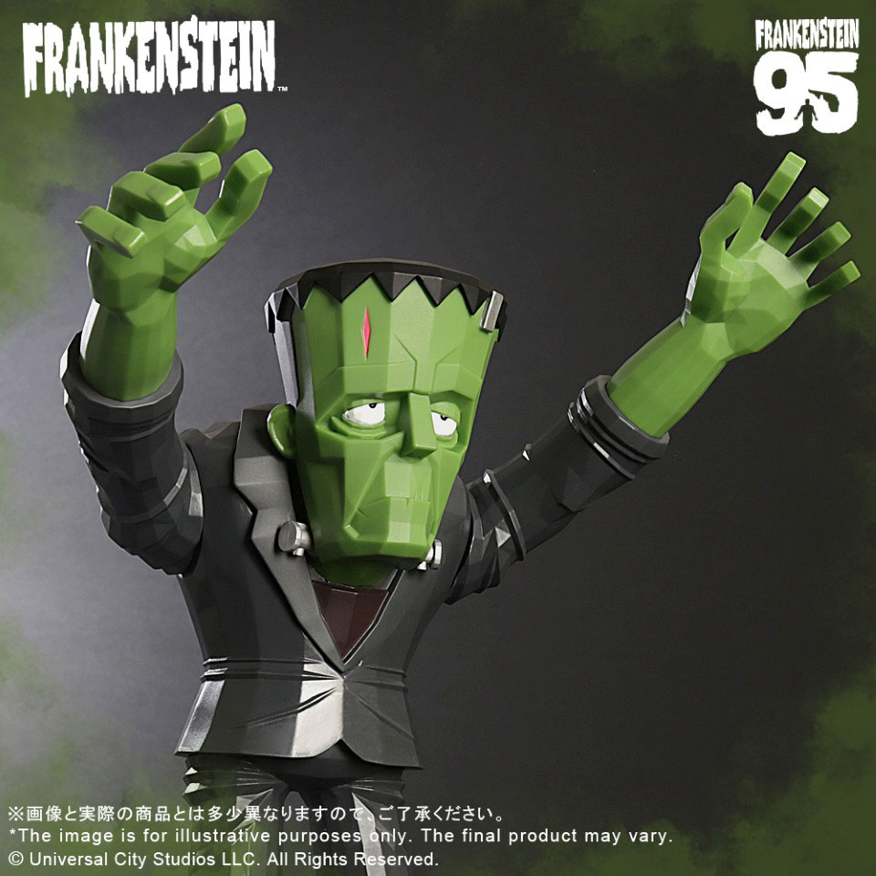 ホラー映画の代名詞的作品「フランケンシュタインの怪物」。その物語に登場する怪物をTOUMA氏がローポリゴン風のデザインにアレンジ!肩を可動させてポーズに表情を付ける事が可能。怪物の特徴的な容姿とポップさが融合した、全高約21.5cmの魅力的なソフビになって登場!