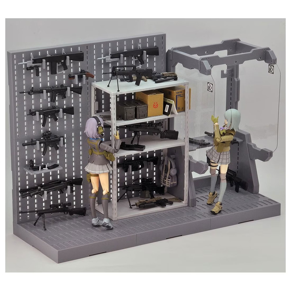 リトルアーモリーシリーズのガンラック各種やシューティングレンジとの接続が可能です。コレクションのディスプレイや組み合わせ撮影にご活用ください。