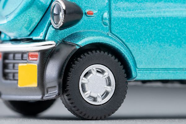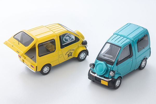 TLV-NEOではミゼットII カーゴを完全新金型で製品化します。今回は1997年のカーゴ追加当初の上級グレード、Rタイプを再現。 N362aがエメラルドグリーン、N362bを黄色としました。初期型の特徴でもあるスペアタイヤを前側に置いた個性的なデザインは、発売中の#カースナに付属のフィギュアとも相性抜群。リアゲートは可動式で、ジオラマ遊びがいっそう楽しめます。