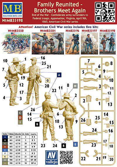 MB35198 マスターボックス 1/35 南北戦争・南北両軍兵士2体・兄弟再会・1865年終戦 マスターボックス(バウマン)(Master Box) ¥ 1,650 16 ポイント獲得 欠品中配送について 再販・予約開始 連絡 お気に入りに追加 送料:700円~配送エリアと送料 合計金額15,000円以上のお買い物で送料無料 ※転売を目的とした大量購入はご遠慮ください メールで商品について質問する LINEで商品について質問する 商品スペック メーカーマスターボックス(バウマン)(Master Box) 品番MB35198 スケール1/35 JAN4544032774929 ユーザーレビュー 0総合評価 0 商品レビューを書く まだレビューはありません。 レビューを投稿してポイントをGetしよう