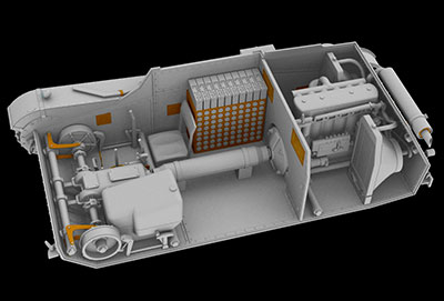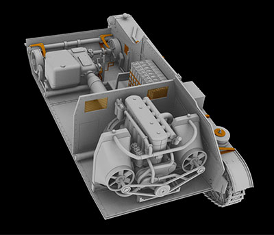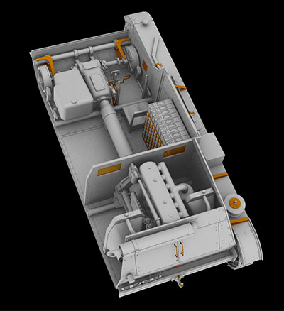 エンジンを空冷水平対抗4気筒から液冷直立6気筒エンジンに変更したためラジエタースペースも含め機関室が大型化され戦闘室と同じ高さになりました。