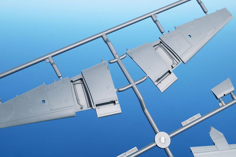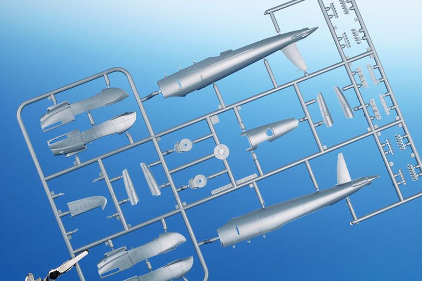 - 与圧コックピット高高度機・5枚のプラパーツのランナーと、クリアキャノピー用のランナー 1 枚