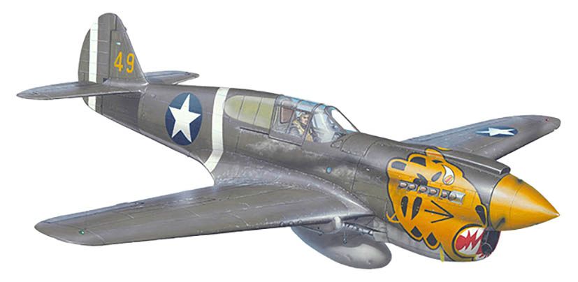 米・P-40Eウォーホーク戦闘機・ノーズアート(タイガー&シャーク)・3Dプリントパーツ付