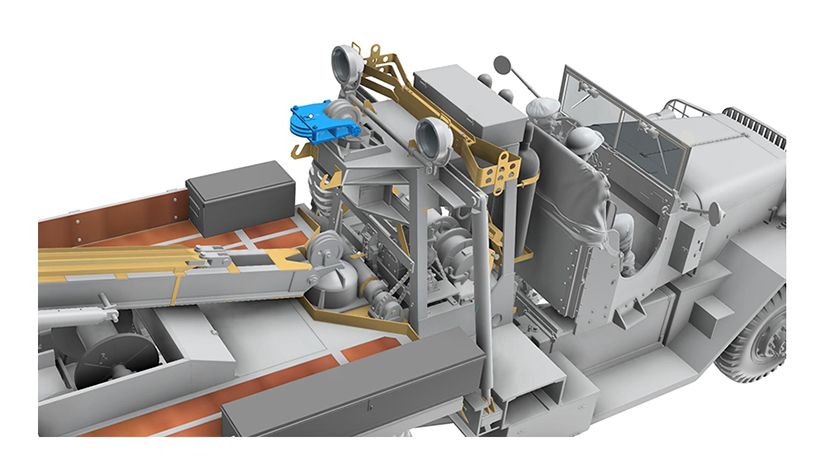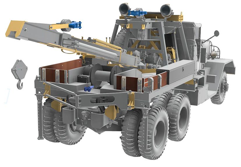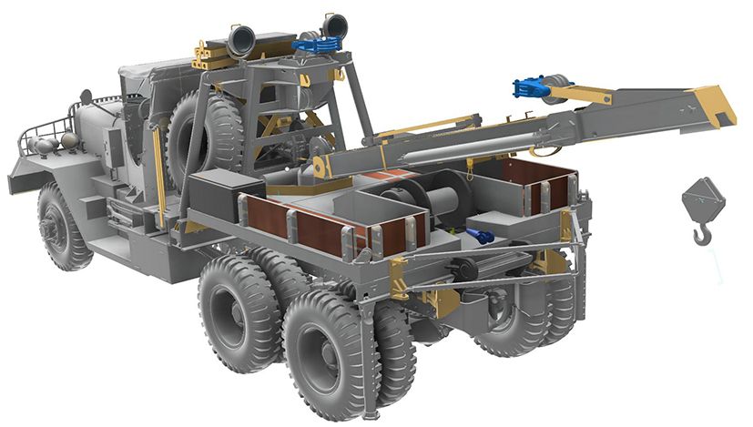 ■シリーズ5のM1A1は1943年に登場し、約3,500台のシリーズ5レッカー車が製造されました。最も顕著な特徴は、新たに搭載されたフルパワーのクレーンであり、軍用仕様の車両前部とキャンバストップ、折りたたみ式のフロントウィンドスクリーンを備えたキャブが組み合わされていました。