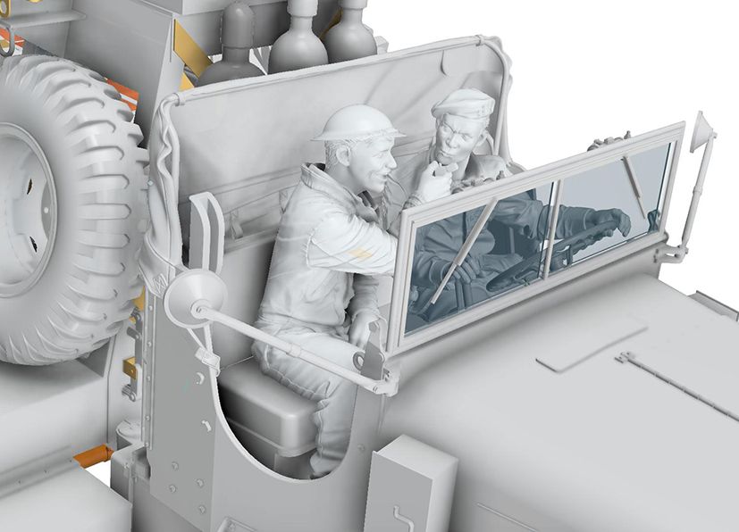 2名の乗員(ドライバーと要員)のレジン製フィギュアが付属。さらにキャンバス幌が3Dプリント製にて精巧に再現。お得なセット。