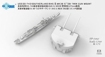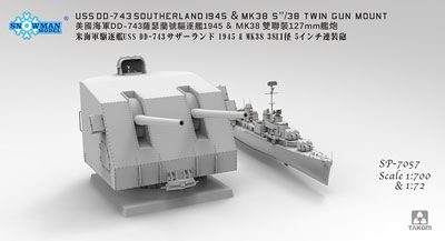 米DD743サザーランド駆逐艦1945(フルハル)+38型2連装砲塔・1/72
