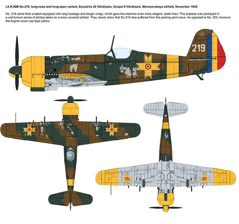 ■ルーマニア空軍は第3軍・第4軍を派遣し、ドイツ軍の南翼を支援。- IAR 80Bは、地上攻撃・防空任務・偵察支援などに投入され、特にドン川周辺の戦域で活動。ソ連軍の反攻(ウラヌス作戦)によりルーマニア軍は壊滅的打撃を受け、航空戦力も大きく損耗。- IAR 80Bは、機体性能ではBf 109やFw 190に劣るものの、操縦性と整備性に優れ、ルーマニア空軍の主力として奮闘。