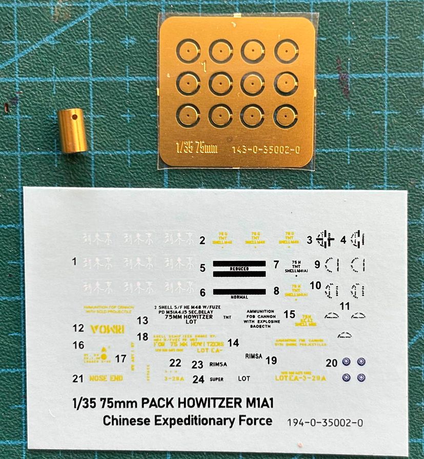 ■アメリカ75mm軽野砲M1A1は荷物を運ぶラバや航空機で簡単に運搬できるよう簡単に分解できる軽量砲として設計されました。M1A1の改良版M1A1は6部品に分解され、-馬曳き(うまびき)用木製スポークスチールリムを採用。有効射程は8.27KGの榴弾を9000mまで飛ばすことができました。700門以上をレンドリースで中国国民党軍が受取り、歩兵部隊の長距離移動に耐えうる有効兵器でした。その後も朝鮮戦争、インドシナ(ベトナム)戦争でも使用。キットは限定生産で3体の中国国民党兵士と3Dプリントパーツの弾薬他が付属した内容となっています。
