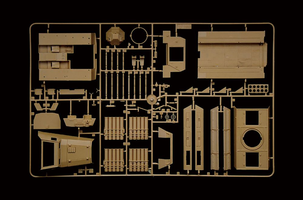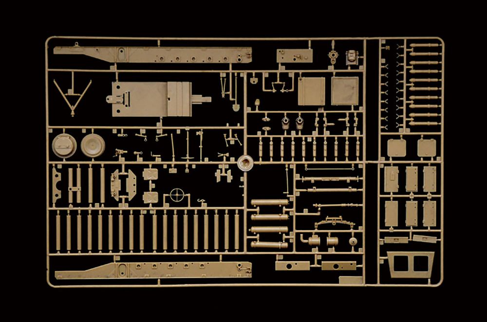 モデルは第二次世界大戦でドイツ軍が運用した自走ロケットランチャー、15cmパンツァーベルファー42型 sWS搭載型を再現した1/35スケールのプラスチックモデル組み立てキットです。仕上がり全長は198mm。車体はシュヴェレ・ヴェアマハトシュレッパー(sWS)重国防軍牽引車を車体形状から正確にモデル化。シャーシもラダーフレームから組み立て。サスペンションアームは1本1本別パーツで再現。履帯は一部一体一部連結式でリアルな仕上がり。メカニカルな足回りを表現します。車体内部は運転席も再現され、運転席ルーフのハッチは開閉が選択可能、さらに後部車体もその形状を正確にモデル化し、車体上部、後部のハッチは開閉を選択して組み立て可能。車体内部には予備砲弾のラックも再現されています。そして後部車体上部に装備されたパンツァーベルファーは10連装のロケットランチャーとその支持架も繊細に表現され、完成後も旋回が可能。ランチャー内には別パーツで用意されたロケット弾も組み込まれ立体的な仕上がりです。個性的な車両のモデルはミリタリーファンには見逃せません。