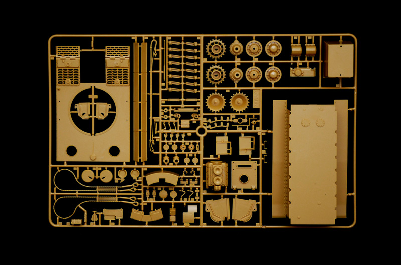 モデルは第二次大戦におけるドイツ軍の重戦車、ティーガーIを1/35スケールで再現したプラスチックモデル組み立てキットです。仕上がり全長241mm。平面で構成された力強い姿を実感たっぷりに再現しています。砲塔は形状を正確に再現し、キューポラや砲投稿部に装備される雑具ケースのディテールもしっかりと再現。キューポラのハッチは開閉を選択して組み立て可能です。車体下部は一体パーツでサスペンションアームはは別パーツ。履帯は一部一体、一部連結式を採用してリアルな仕上がりを確実に再現します。車体上部はエンジンデッキルーバーなども繊細な仕上がり。エンジンハッチは開閉可能で内部にはエンジンの上部ディテールを再現したパーツもセット。もちろん車体上部にセットされる牽引ロープや車載工具類もモデル化され、繊細な仕上がりが実感を高めます。で砲塔側面パーツにはそこに装着された予備履帯も一体でモデル化。車体下部の足回りは千鳥レイアウトのロードホイールを一体でパーツ化。加えて履帯も上と下の2分割で再現。手軽な組み立てとリアルな仕上がりを見事に両立させたキットになっています。ビギナーにもおすすめの手軽に取り組めるキットです。