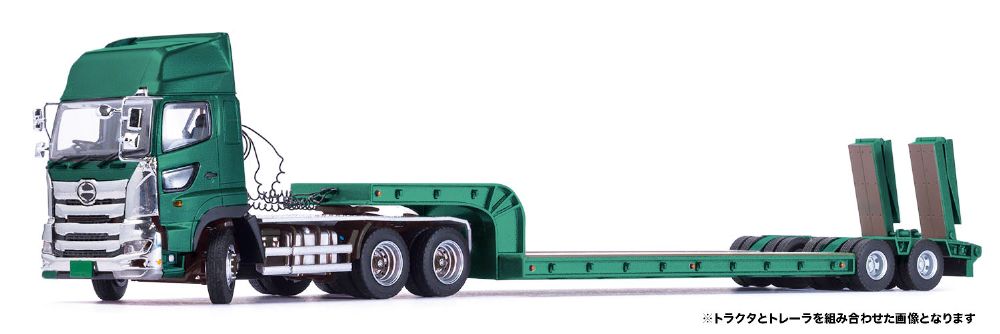日野プロフィアをはじめ、各メーカーのトラクターと組み合わせて、また、荷台には同スケールの建機などを搭載してお楽しみいただけます。