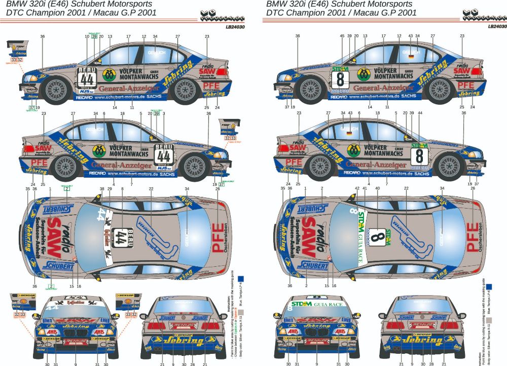 1/24 BMW320i E46 2001 DTCCウイナー 2001 マカオ ギアレース/DTC ドイツ ツーリングカーカップ チーム・シューベルト #8 & #44 デカール付属
