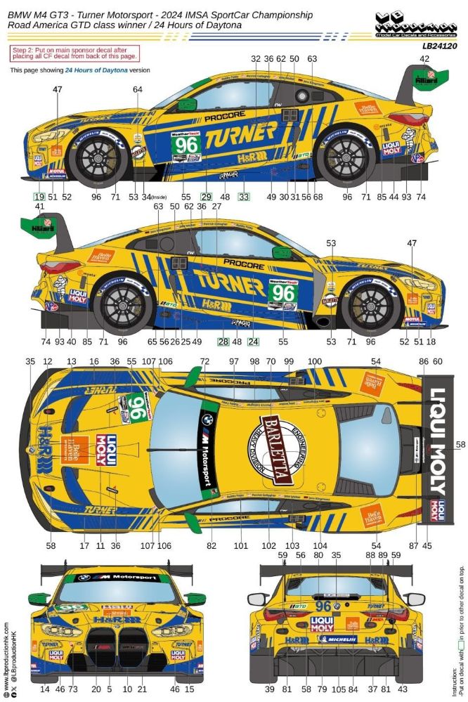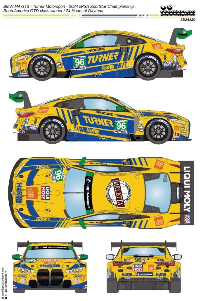 1/24 BMW M4 GT3 2024 IMSA スポーツカー・チャンピオンシップ ロード・アメリカ GTD クラスチャンピオン&デイトナ24時間レース ターナー・モータースポーツ #96 デカール付属