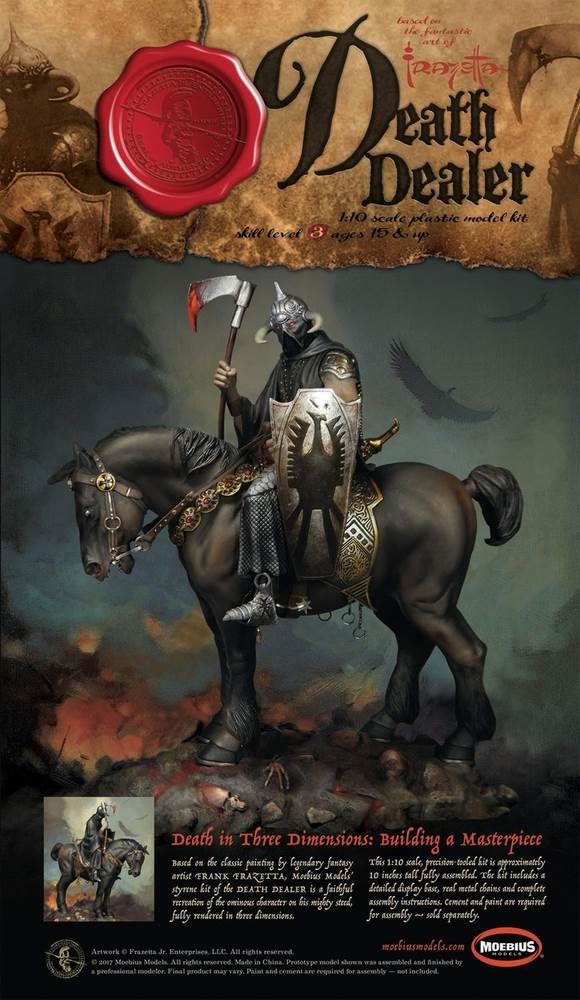 モデルはこの1973年に発表された人気アーティスト、フランク・フラゼッタのデス・ディーラーのイラストを立体化した1/10スケールのプラスチックモデル組み立てキットです。