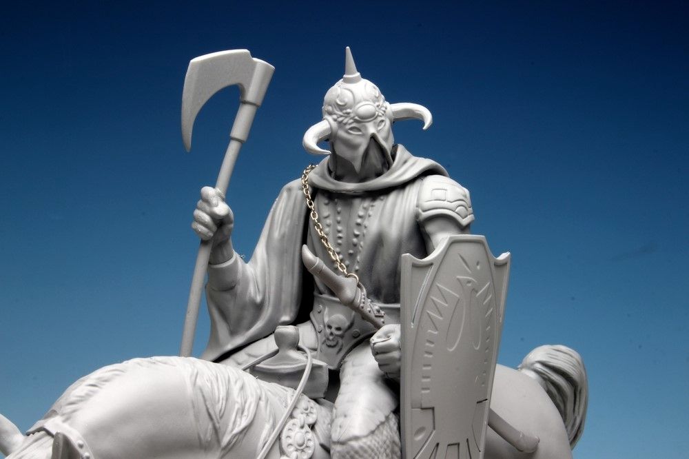 ■馬に跨って斧と盾を手にしたデス・ディーラーの姿をイラストそのままにモデル化