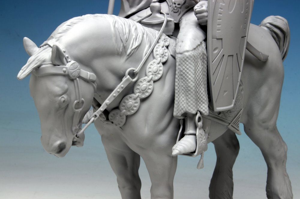 ヘルメットをはじめ、マントやチュニック、鎧や鎖帷子などのたるみや皺、あるいは表面のディテールなど、繊細な表現が実感を高めます。