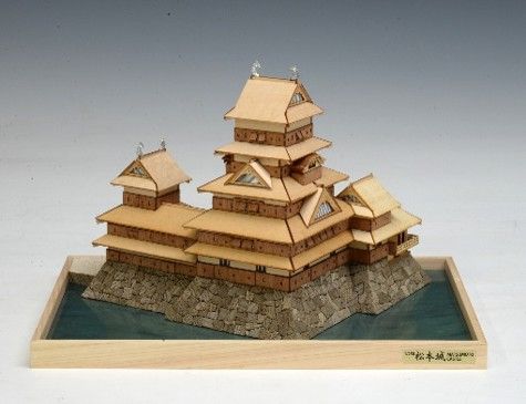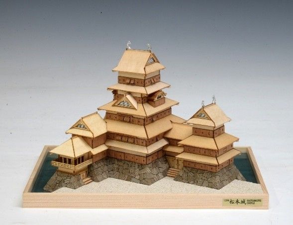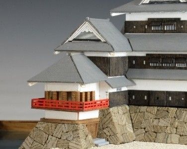 本キットはミニ天守シリーズ第二弾として、高い人気を誇る松本城を1/250スケールで模型化。コンパクトでありながら、寸法精度の高いレーザー加工部品で松本城の特徴である複合連結式構造や月見櫓の廻り縁・高欄はもちろん、下見板、狭間、石落とし等細部まで忠実に再現しました。全ての部品がレーザーまたは切削加工済みの為、一部(石垣積みなど)の追加工のみで組立が可能です。内堀の表現には専用水面シート(キット付属)を採用し、情景を含めた再現が松本城の魅力を一層引き立てます。また、城の北東側を飾り台正面に配置することにより、城の入口側と内堀側双方のアングルで展示が楽しめます。