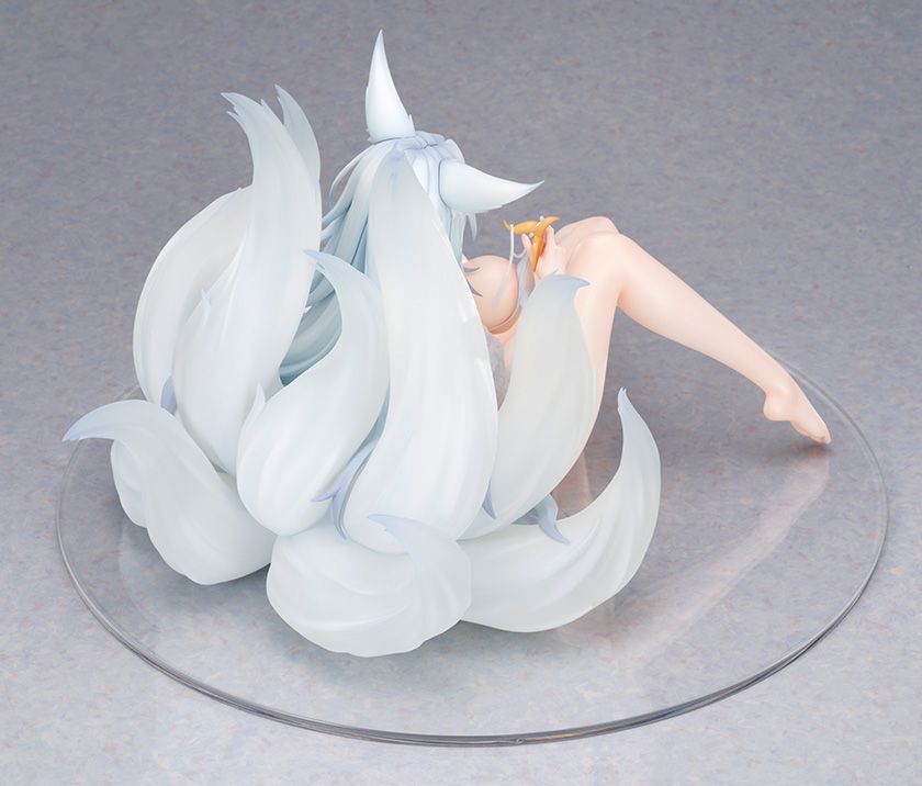 少し困ったように眉を下げた表情が可愛らしい仕上がり。肉感豊かなプロポーションもしっかり再現され、水辺で濡れたようなツヤ感のある肌塗装が臨場感を演出します。流れるような髪、衣装の質感や手にしたヒトデのニュアンスも細やかに造形。クリアパーツを用いた尻尾の彩色表現や、ボレロのパール塗装も相まって密度感ある出来栄えです。