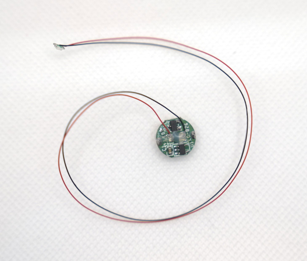 直径約11mm、高さ約5mmの極小サイズにLED、スイッチと電池ケースが一体となった扱いやすいモジュールです。