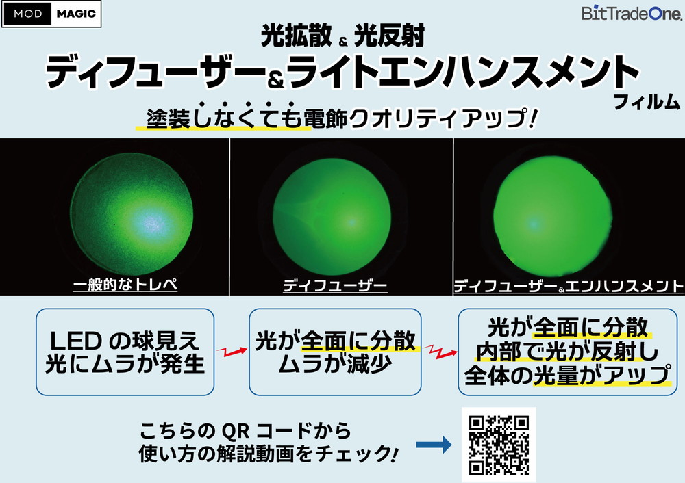 未塗装でもクリア面に貼るだけで拡散効果を実現します!