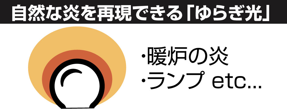 内蔵されたアルゴリズムにより、リアルなゆらぎを表現し、ろうそくや暖炉、焚火のような温かみのある照明効果を実現します。