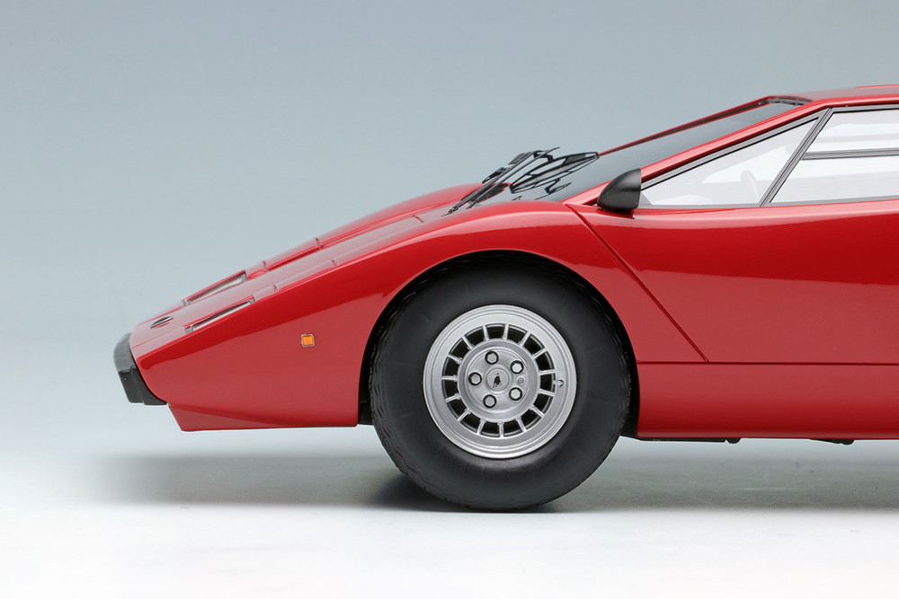 細部にわたる造形と素材選定の積み重ねが、全体として「カウンタックらしさ」を際立たせる結果となりました。見る角度や光の加減によって変化する造形の奥行きは、ミニチュアでありながら実車の存在感を感じさせる仕上がりです。
