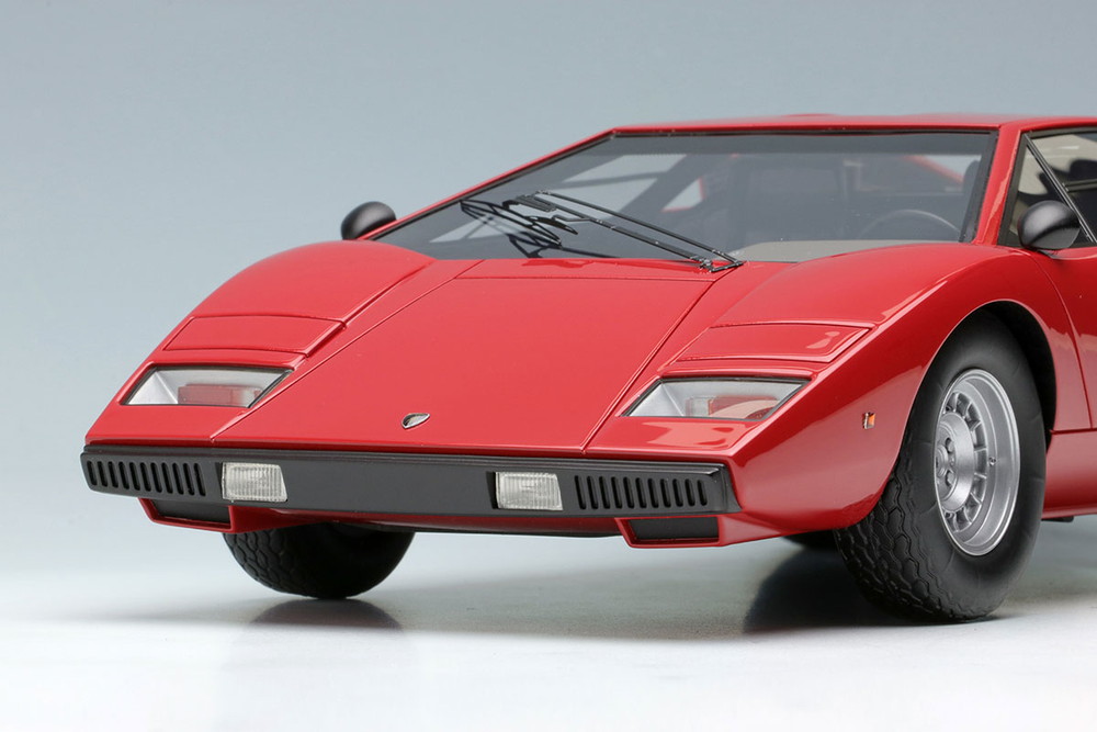 モデルは、ランボルギーニ・カウンタック LP400の持つスリークでシャープな造形を、1/18スケールならではの存在感と高い精度で再現しています。