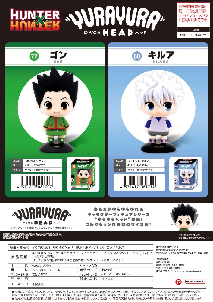 あたまがゆらゆら揺れるキャラクターフィギュアシリーズ【ゆらゆらヘッド】から【ゴン】と【キルア】 が登場!