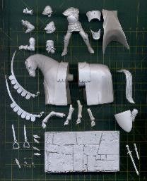 - 頭部2種(兜を被っている/いない)と左腕2種(盾有/無)、兜を被っていないときに脇に抱える兜パーツが付属