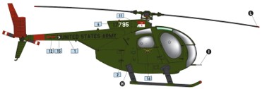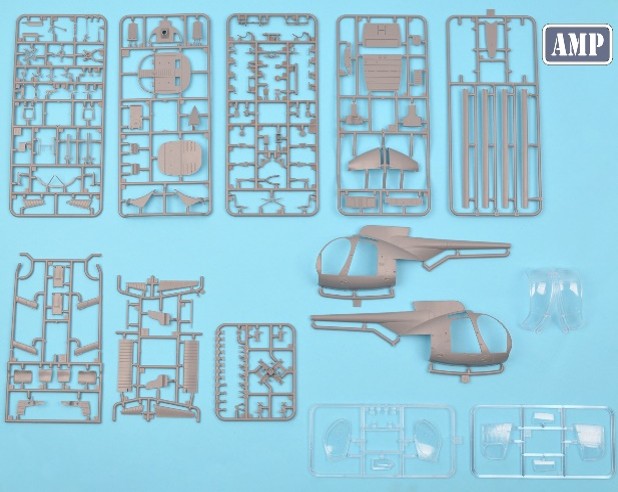 ウクライナのAMPから完全新金型の 1/32 OH-6A カイユース インジェクションプラスチックキットのご案内です。OH-6はアメリカのヒューズ・ヘリコプターズ社が開発した小型ヘリコプターで、正式な愛称は「カイユース」ですが、開発計画名LOH(Light Observation Helicopter = 軽観測ヘリコプター)から転じた「ローチ(ドジョウ)」の別名でも呼ばれています。1963年に初飛行したOH-6はアメリカはもちろん数多くの国の軍隊で使用され、今も現役で運用されています。日本では川崎重工業がライセンス生産したOH-6Jが陸上自衛隊に導入されました。またOH-6をベースに民間型MD 500が開発され、OH-6とMD 500を合わせて約6,000機が生産された本機は、その小型軽量で頑丈な機体と良好な操縦性能により世界の名機の一つに数えられています。キットにはエッチングパーツと塗装マスクシール、3Dプリンター製パーツと2種米陸軍デカールが付属しています。完成時にはローター直径約251mm、胴体長約203mmとなります。この機会に是非ご検討をお願いします。