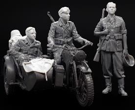 1/35 WW.II ドイツ KS600 サイドカー乗員 用頭部w/アクセサリー (頭部3点 + アクセサリー) (タミヤ35384用)