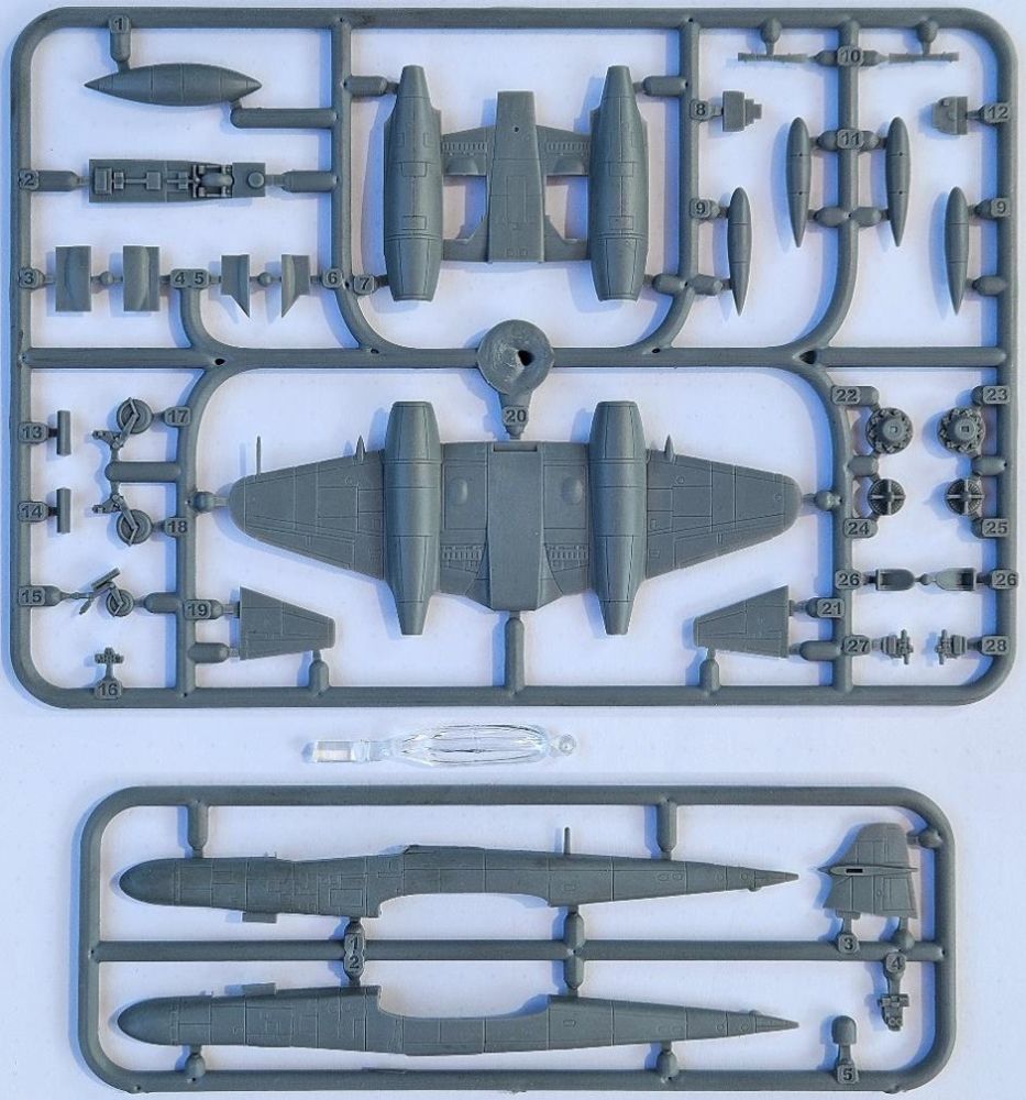 プラスチックキットのご案内です。今回のリリースされる商品は新規金型パーツによりミーティア NF.14を再現しています。キットには3種デカール(イギリス x 2、フランス x 1)と塗装マスクシールが付属しています。1/144というコンパクトなスケールながらモールドはシャープで、付属の