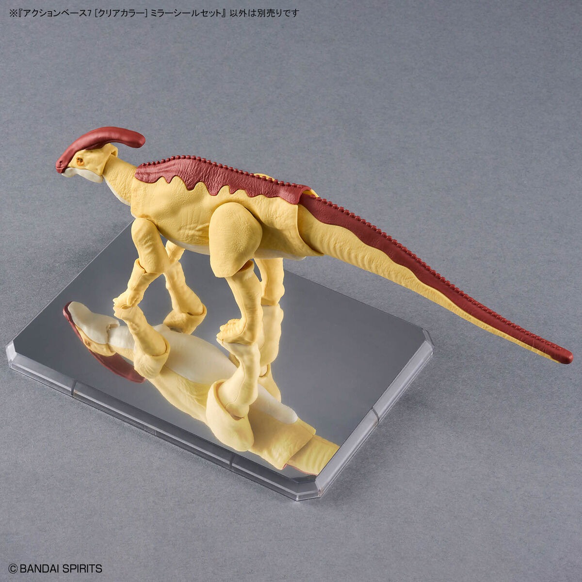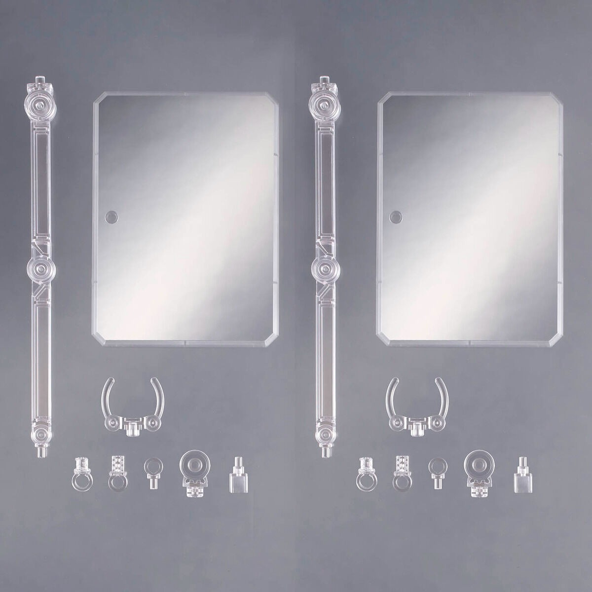 1/144スケールプラモデルを安定して保持できる構造のアクションベース7 [クリアカラー]に、ディスプレイの幅を広げるミラーシールがセットになって登場!