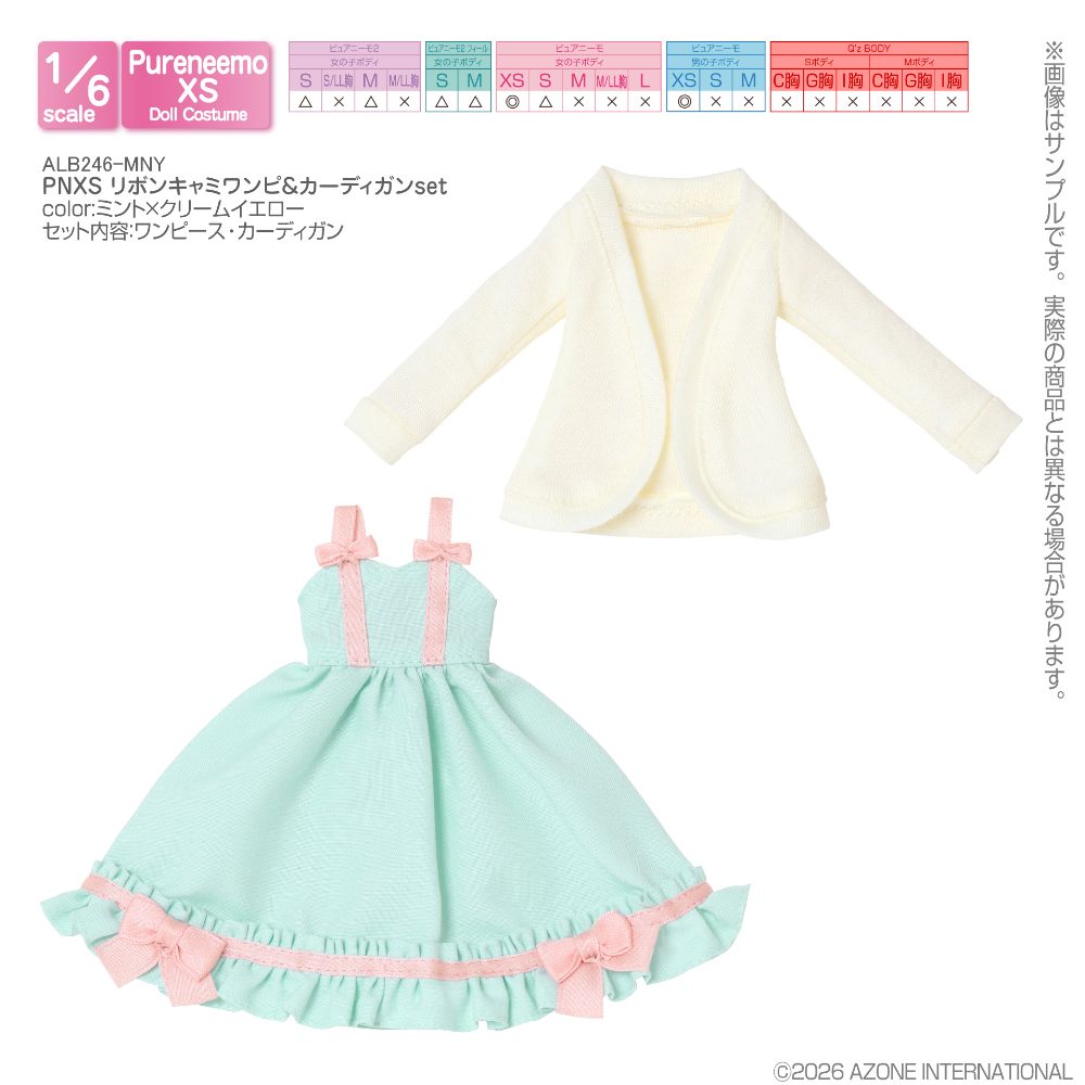 PNXS リボンキャミワンピ&カーディガンset ミント×クリームイエロー