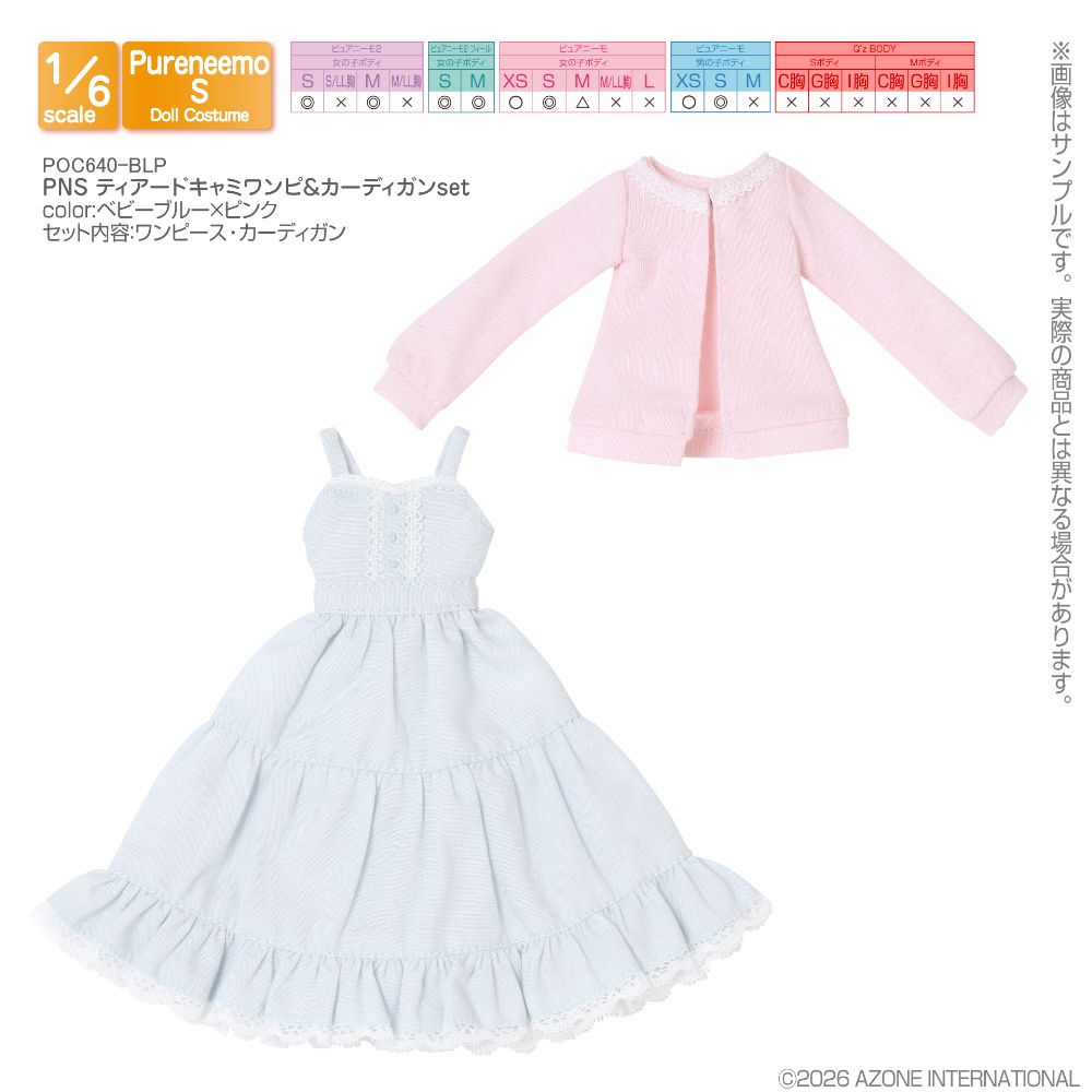 PNS ティアードキャミワンピ&カーディガンset ベビーブルー×ピンク