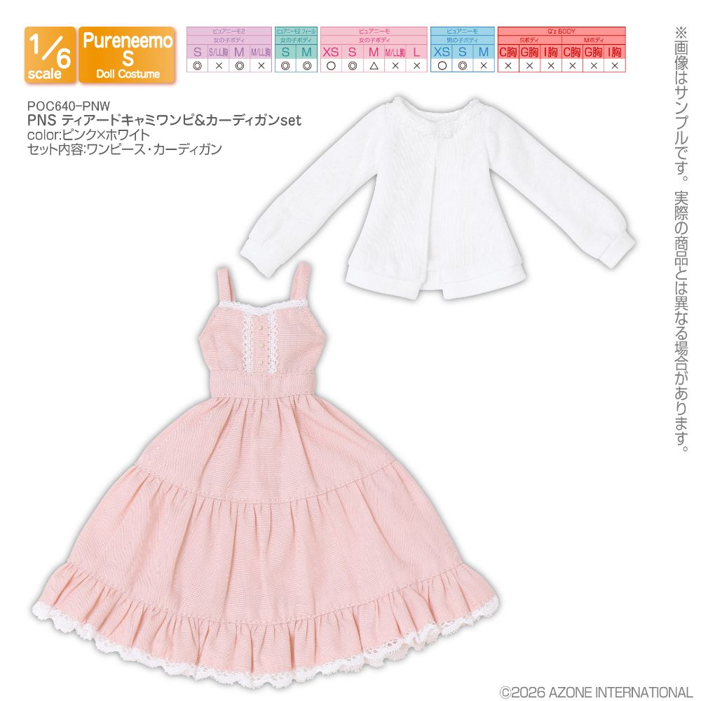 PNS ティアードキャミワンピ&カーディガンset ピンク×ホワイト