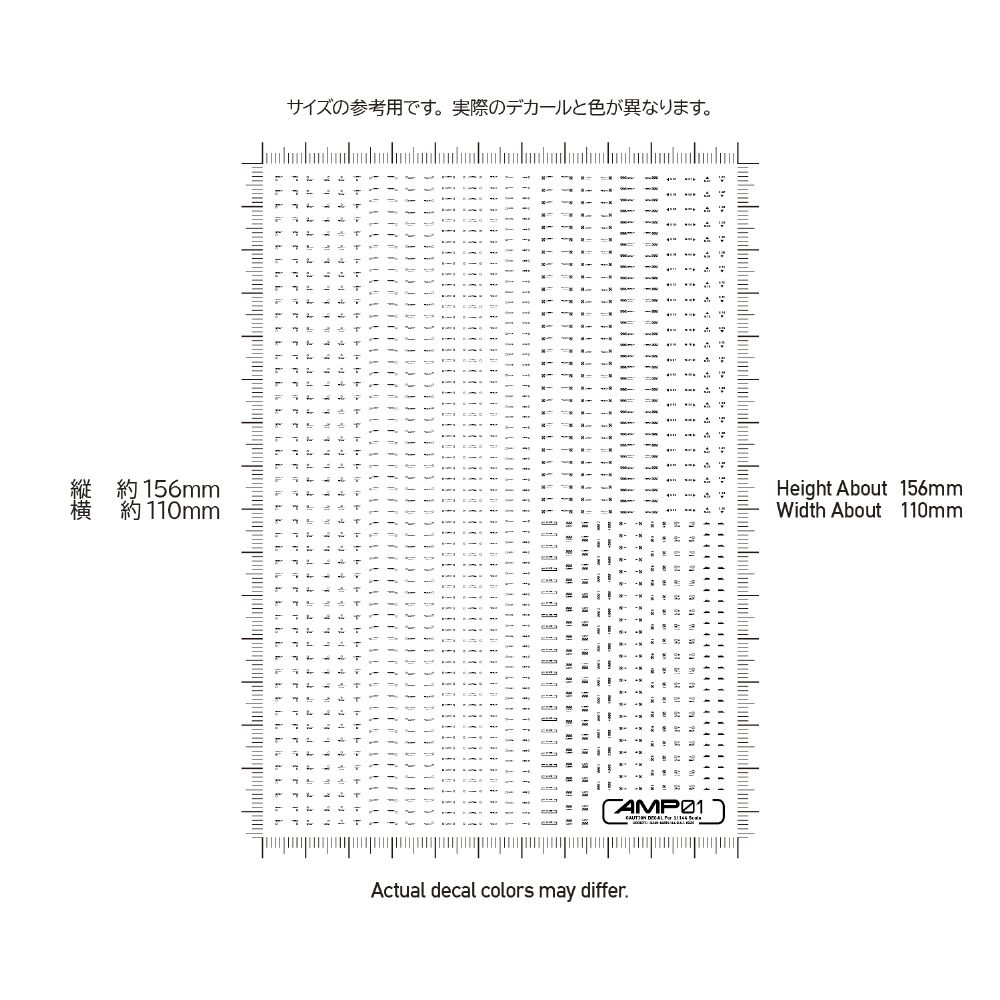 メカモデル向けの水転写式汎用コーションデカール「AMP」は、近年の細分化されたメカモデルのパーツ割に対応するため、デザインを刷新した新シリーズです。装飾を削ぎ落としたスタンダードなデザインが中心で、作品の精密感と情報量を高めます。ある程度の可読性を確保しているため、ブログの文字解説を参考に、最適な貼り付け場所を選定してください。