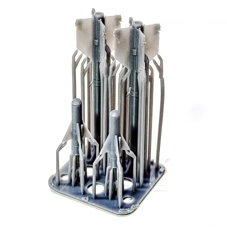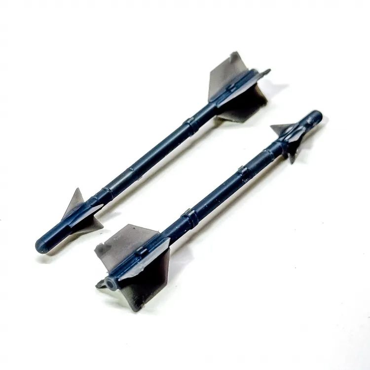 AIM-9Cは、AIM-7を搭載できないF-8のために開発された、レーダー誘導方式を採用したAIM-9サイドワインダーのサブタイプで、ベトナム戦争期を中心に運用されました。本製品では、誘導部を除いた部分をAIM-9Dに準拠した形状で再現。薄型の誘導翼、端部にローレロンを備えた安定翼、ランチャーと噛み合う部分まで精密にモデリングしています。
