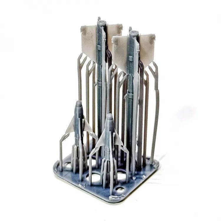 AIM-9Dは、初期型のAIM-9A/Bから大幅な改良が加えられた赤外線誘導式短距離空対空ミサイルです。AIM-9A/Bと比較して、対戦闘機戦闘における誘導性能が大きく向上しました。F-8では当初AIM-9Bを搭載していましたが、まもなくAIM-9Dへと置き換えられています。本製品では、薄型の誘導翼や端部にローレロンを備えた安定翼、ランチャーと噛み合う部分まで精密にモデリングしています。