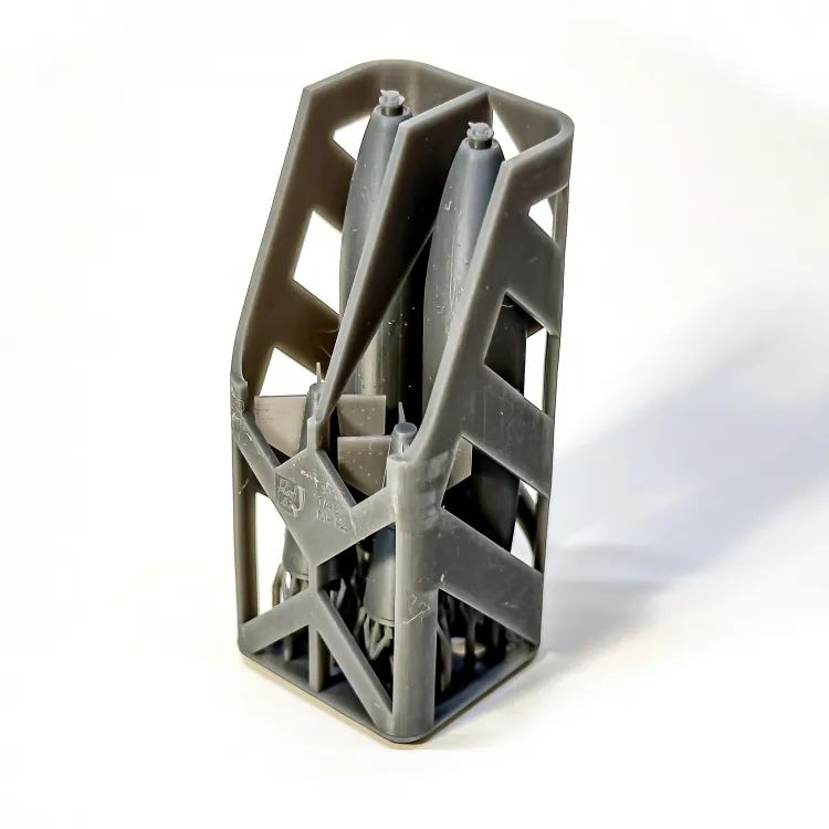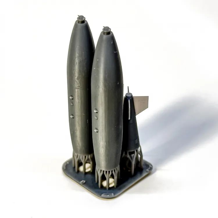 汎用爆弾 Mk.80 シリーズの中で最大となる2000ポンド(約907kg、約1トン弱)の爆弾です。F-8 をはじめとする戦闘機で運用可能な最大級の搭載兵器となります。本製品では、弾頭の信管やパイロンのエジェクターと噛み合うサスペンションラグなど、実機の接合部や機構を精密にモデリングしています。また、本モデルはRafAvi 4865のF-8ウイングパイロンにフィットするよう設計しています。