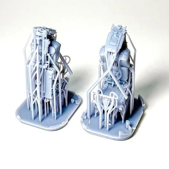 F-4に搭載されているMB Mk.H7イジェクションシートを、3Dモデリングおよび3Dプリントによって再現したディテールアップパーツです。MB Mk.7シリーズのイジェクションシートは多くの機種に搭載されており、シート側面に取り付けられる装置の有無など、機種ごとに細かな差異があります。本製品では、F-4EJ改に搭載されている状態のMB Mk.H7のディテールを再現しています。シートベルトは、整備員の手によって整えられた状態を表現しました。設計は実物資料に基づいて行っていますが、サイズはキットに合わせて調整しているため、無加工で取り付けることができます。
